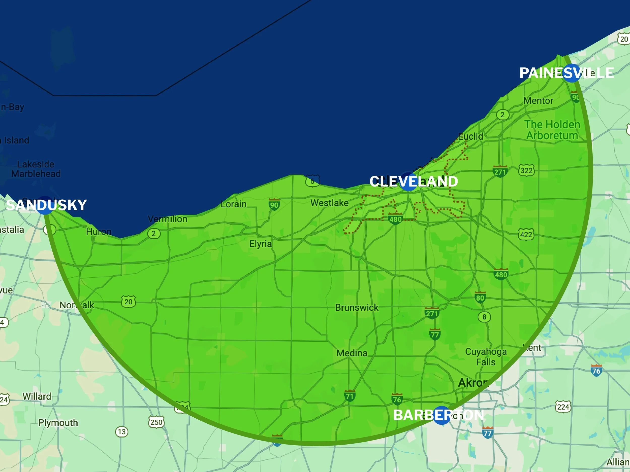 We serve the Greater Cleveland area. From Sandusky to Mentor, from Painesville to Barberton, we work all over Northeast Ohio. Take a look at our service map below. If you’re unsure if we service your area, feel free to give us a call!